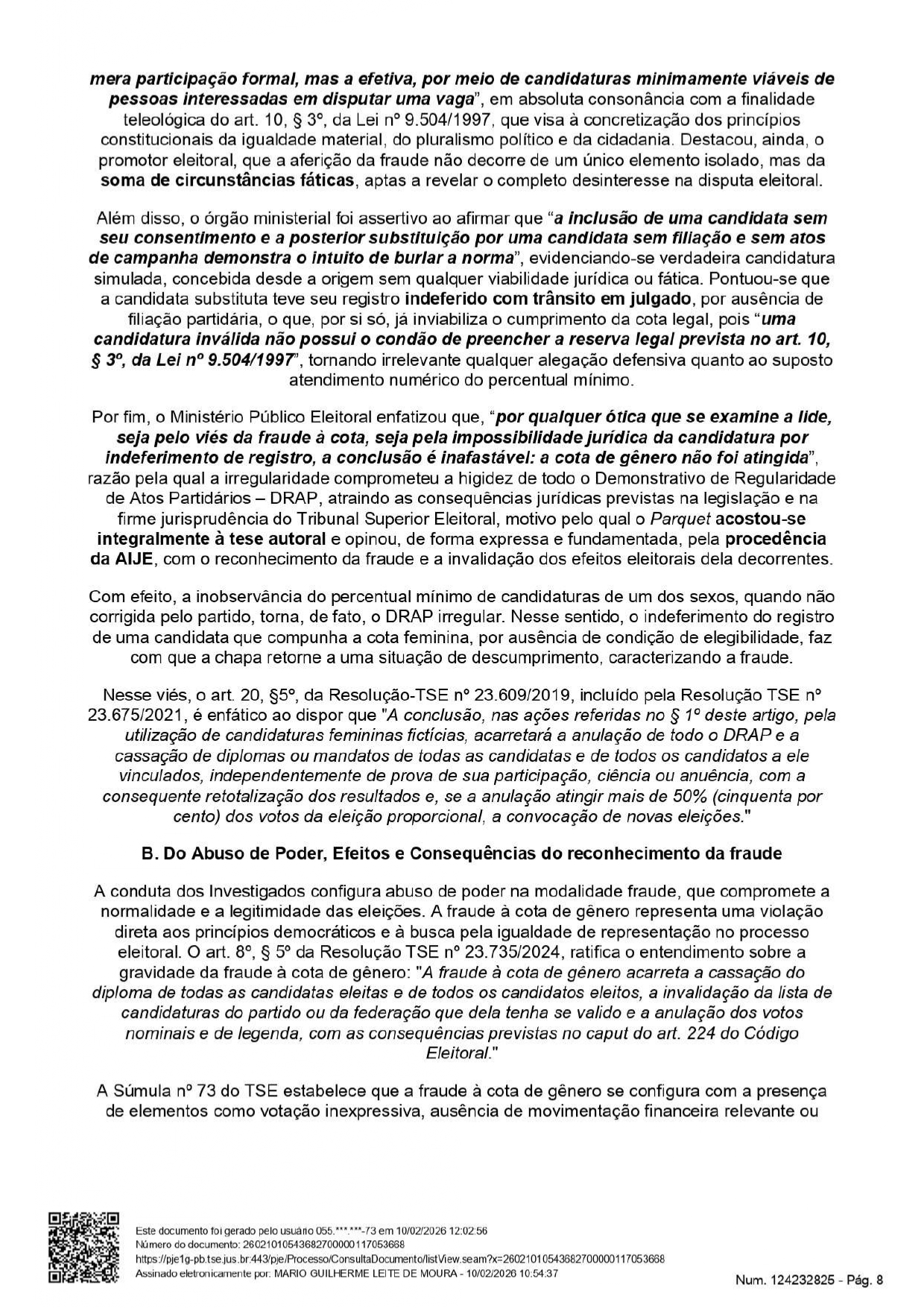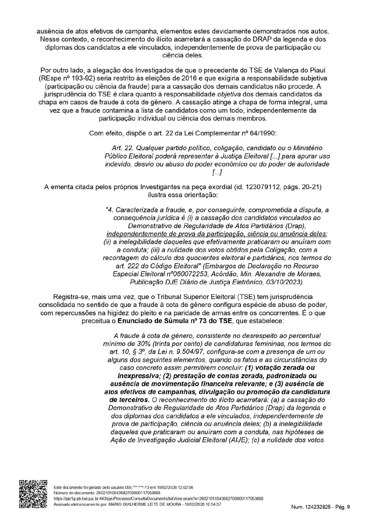 Como observou a reportagem, com a decisão, os vereadores Ariano Dantas Monteiro, José Carlos Alves de Sousa e José Jackes Rodrigues do Nascimento. A decisão é assinada pelo juiz Mário Guilherme Leite de Moura. No caso de Ariano Dantas Monteiro, que era presidente do partido em 2024, também foi determinada a inelegibilidade por oito anos.